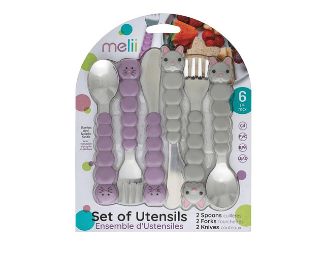 - Incluye dos cucharas, dos tenedores y dos cuchillos.
