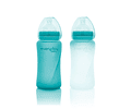 Las mamaderas Healthy de Everyday Baby tienen un diseño ergonómico y están fabricadas con materiales seguros. Están hechas de vidrio borosilicato ligero de alta calidad, y van recubiertas con una fina capa de silicona que le da mayor durabilidad y agarre. Además este tipo de cristal integra un sistema antirrotura, lo que garantiza la seguridad, ya que en caso de romperse el cristal se astilla, pero no se rompe, quedando el mismo dentro de la propia capa de silicona.