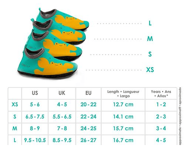 • Disponibles en 3 tamaños: XS (1 a 2 años) , S (2 a 3 años), L (4 a 5 años)